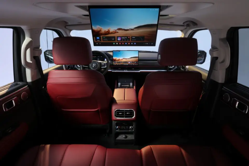 内饰升级方面,新车换装了16.2英寸悬浮式中控屏,支持2.5K超清分辨率,采用了更加便捷的怀挡设计。中控台下方新增了带通风功能的50W大功率无线充电面板,前排中央扶手内嵌入了5.4升容量的智能冷暖箱。值得一提的是,新车取消了全景天窗配置,取而代之的是2.5K高清吸顶折叠屏。