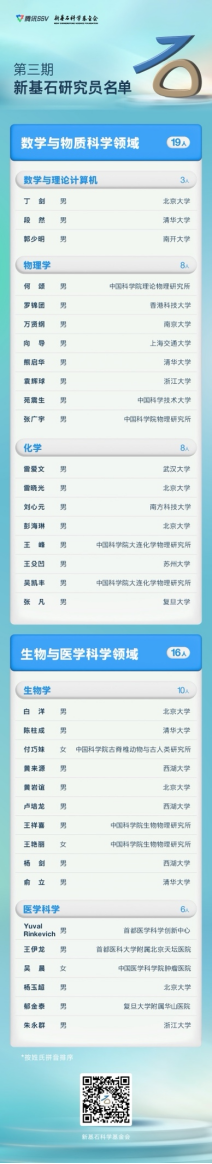 在基础研究资助领域具有里程碑意义的公益项目——新基石研究员计划,经过为期半年的严格筛选与评审,于11月24日正式公布第三批获选名单。本次共有35位杰出科学家获得殊荣,他们将在科研道路上获得强有力的支持。